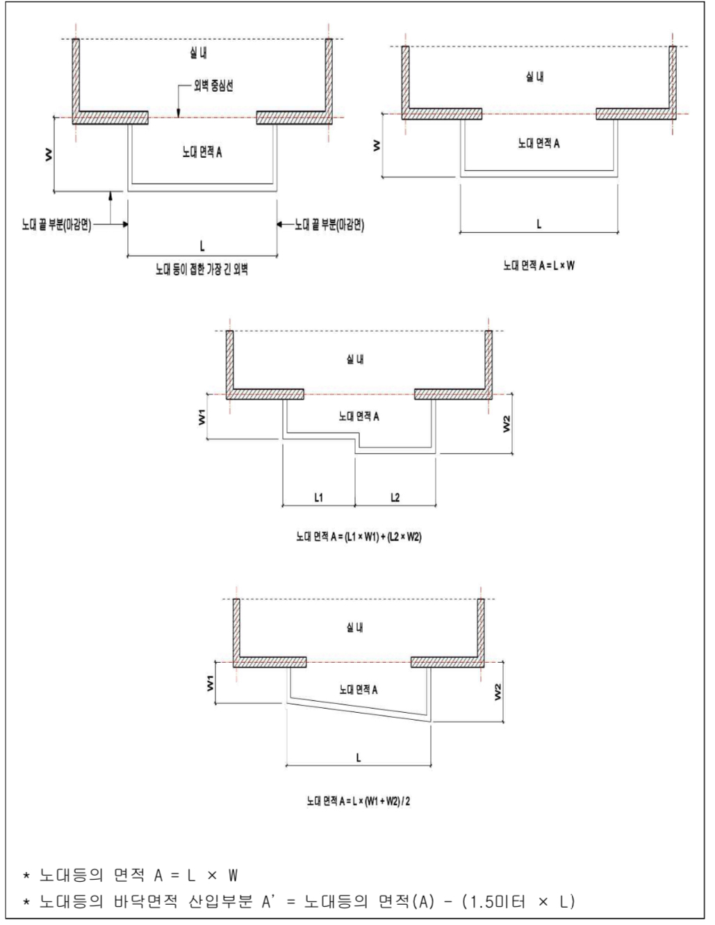 노대면적 - (1.5 x 외벽에 접하는 변)