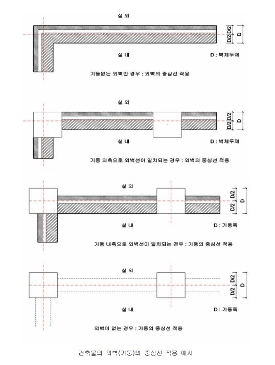 (1) 외단열공법 : 외벽중 내측 내력벽의 중심선